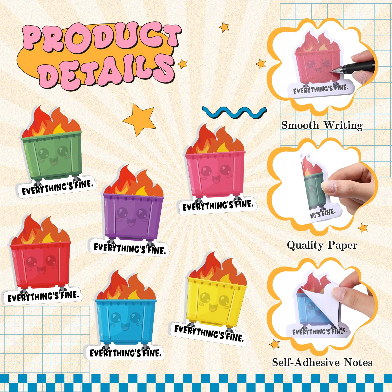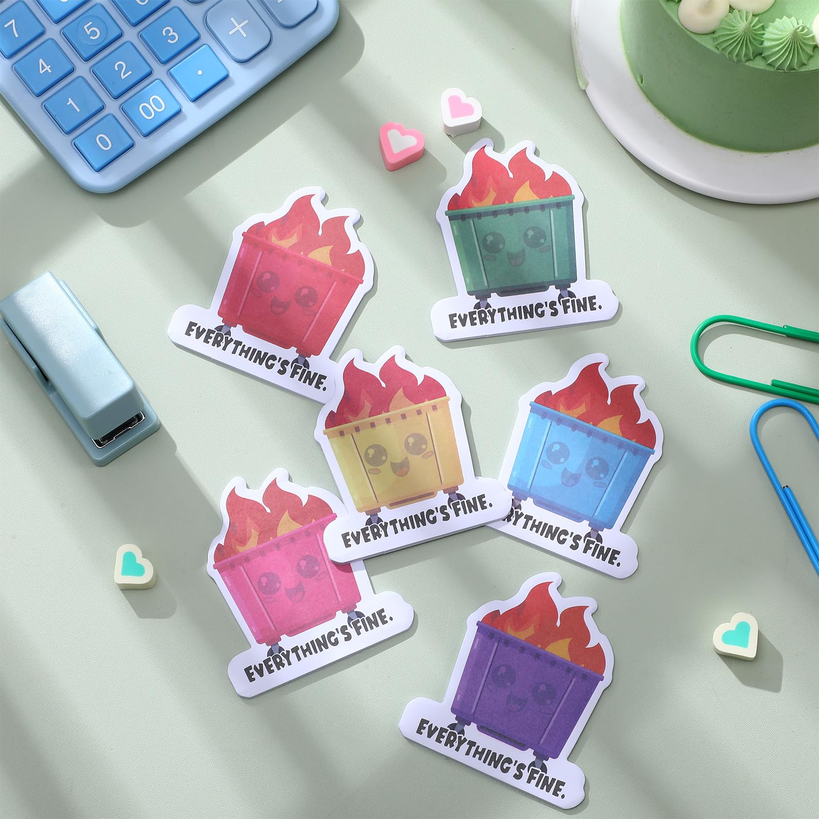 - Hilarious Dumpster Fire Design: stand out with these uniquely styled dumpster funny sticky notepads; Their whimsical dumpster fire design adds a dash of humor to your workspace, delight colleagues and friends with notes that bring a smile