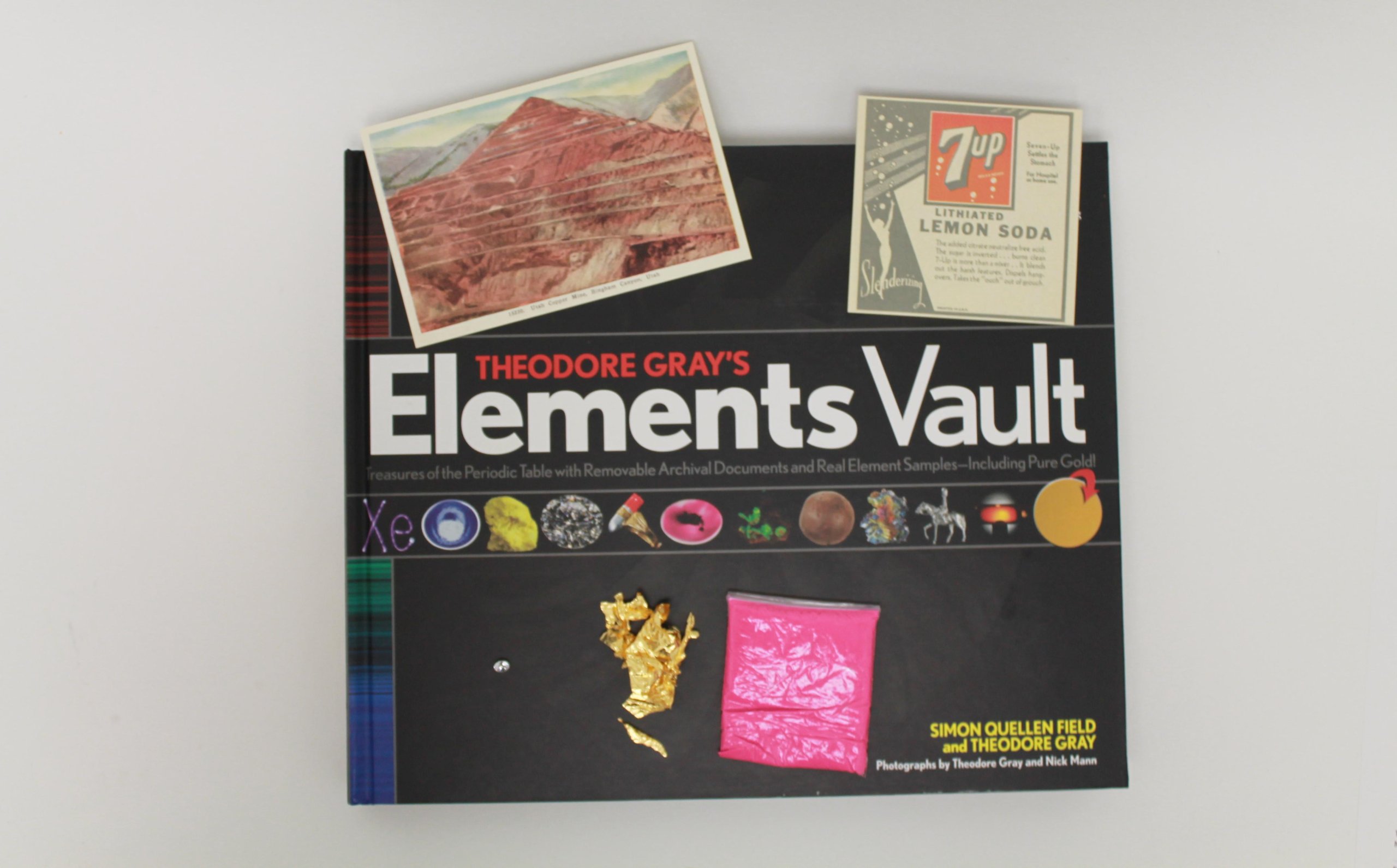 The exploration of the elements continues! Theodore Gray’s Elements Vault builds on Gray’s best-selling book with all new text, plus removable historic letters and other artifacts and collectible samples of real elements The Elements Vault picks up where The Elements left off. Organized into the nine major groups of the periodic table, including the alkali metals, the alkali earth metals, the transition metals, the nonmetals, the metalloids, the halogens, the noble gases, the actinides, and the lanthanides, Elements Vault includes all new text, new photographs, and even more information about the elements. Elements Vault also includes 20 removable historic documents related to the elements and the field of chemistry, such as Einstein’s famous letter to Roosevelt explaining the potential of uranium for use in nuclear weapons, a genuine advertisement for lithium-laced 7UP soda, Mendeleev’s original notes on the periodic table, and more. Each of these documents is individually packaged in an envelope attached to the book page. The document can be removed and handled and then put back into the book for safekeeping. Also here is a gorgeous 20″ x 10″ poster of the unique rainbow spectrum emitted by each element in the periodic table. Also included inside the book are real samples of pure elements! Filled with Theo Gray’s and Nick Mann’s trademark stunning photography throughout, Elements Vault is the perfect addition to Gray’s growing series of all-things-elements.