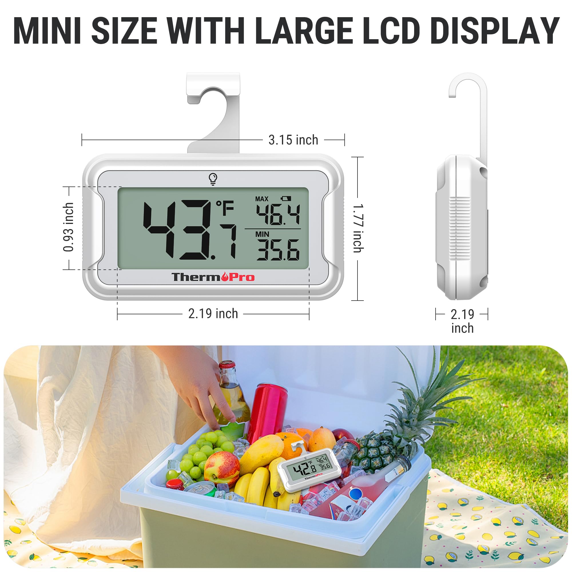 - [(Flexible Placement Options & Compact Design)] This fridge temperature monitor can be placed in multiple ways: stand it on a shelf, attach it magnetically, or hang it with the hook; Its small size makes it perfect for mini fridges, so you can easily take it with you and use it anywhere without it taking up too much space