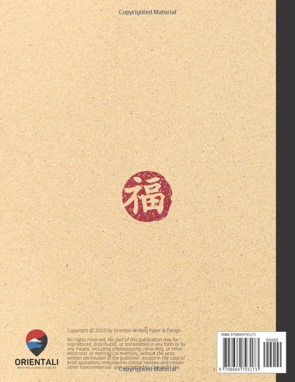 Master Chinese characters with this beautiful tian zi ge notebook! This classic Tian Zi Ge Chinese Character Practice Book is designed for all dedicated students of Chinese language who want to improve their skills in writing Chinese characters. This character exercise book contains 120 pages of Chinese character practice paper, with the popular grid style known as tian zi ge. Each square is designed for one character, and the area inside each square is divided further into four quadrants to guide proper forms, placements, and strokes for each character. With all the pages nicely bound into a workbook, now you have a handy way to track your progress and keep all your character sheets together! Features: 120 pages of tian zi ge paper, with clearly outlined squares and quadrants to guide proper forms and positioning of each character Minimal, beautifully designed cover Large size (8.5 x 11 in) with lots of space for writing Perfect for daily handwriting practices by kids and adults Ideal for use in classrooms and in preparing for standardized exams (e.g. all levels of HSK exams) High-quality, white paper pages Premium matte soft cover Made in USA We take a great care in calibrating the spacing and the size of our grids for the best writing experience. (Please click on the cover image and take a “look inside” to see the difference!) Line width is just perfect – not too thick, which often adds clutter to the pages Quadrants are marked with dotted, grey lines to improve readability Extra inside margins so that you can move your hands more freely! Grab a copy and start mastering your Chinese characters today! Created with love by Orientali Writing Paper & Design.