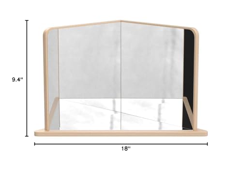 This 4-way mirror is perfect for sensory play. Create a reflective environment for children and toddlers to inspect interesting objects. Made from sturdy birchwood, this mirror is designed to last for years of home or classroom use. This toddler mirror also features rubber feet to prevent slipping and protect surfaces from scratches. Give screens a break! Use this kids mirror to reflect pebbles, marbles and other manipulatives. Use it as a base for building with blocks and explore reflections. For all ages. || Size: 11.8″H x 18″L x 9.4″W.