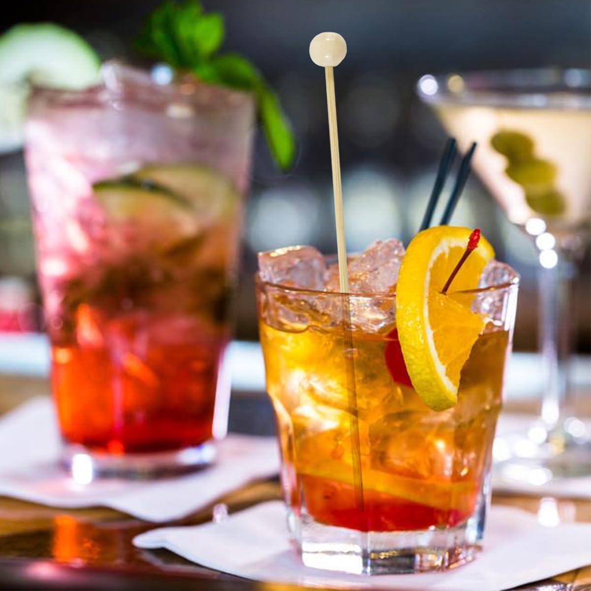 - Each wooden drink stirrer stick with a ball on top,unique design, disposable for easy clean up, or hand wash for reuse, great for daily using.