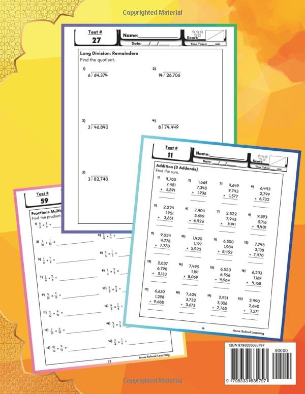 This workbook helps 4th-grade students master fundamental math skills such as arithmetic, fractions, and geometry through timed practice.