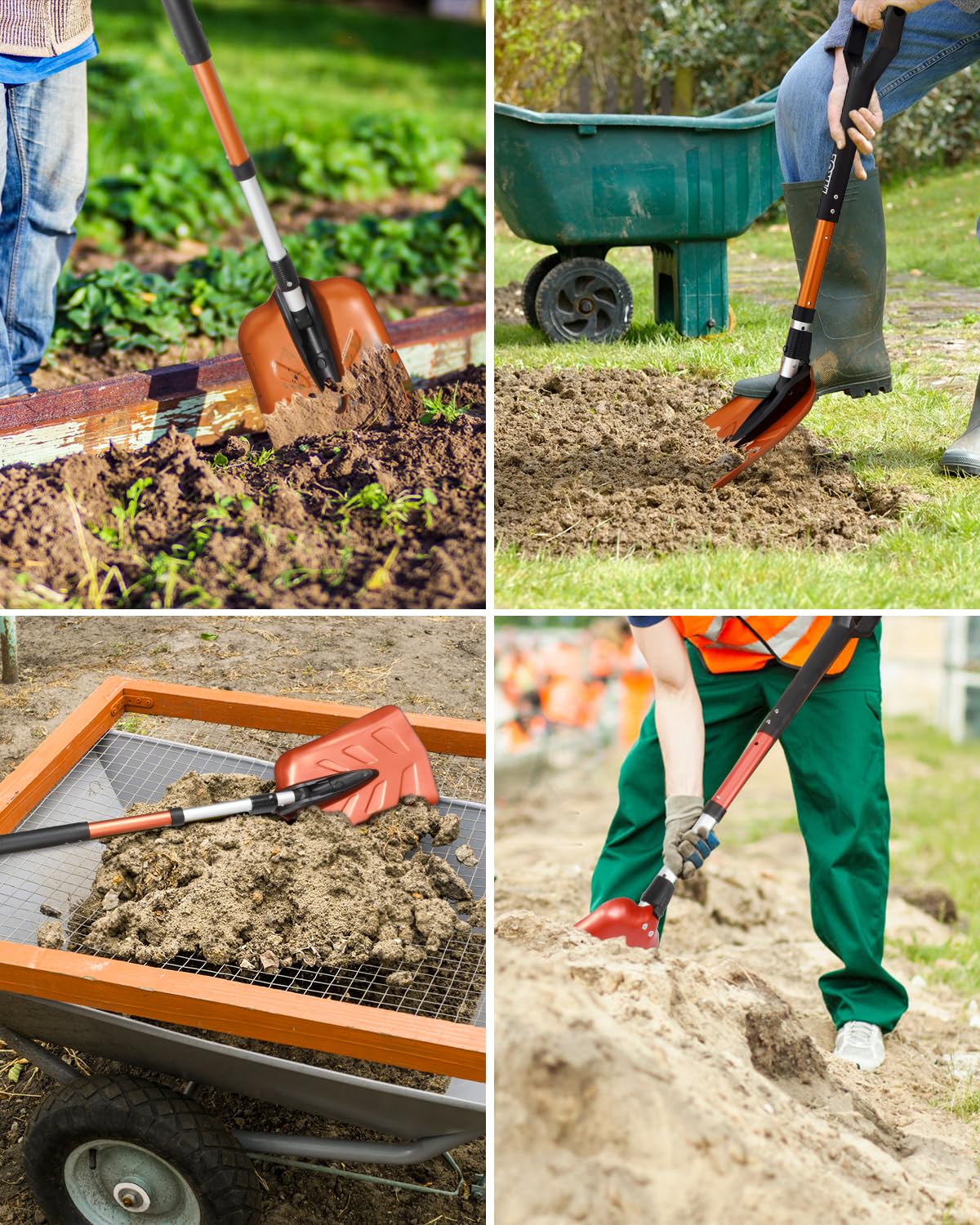 - MULTI-FUNCTIONAL TOOL – TIROL transfer shovels are adaptable tools that can be used for a wide range of tasks, including beach sand, chicken coop, gardening, landscaping, construction, and snow removal. These shovels are designed to be lightweight, making them easy to handle and less stressful during work. These square head shape shovels are specifically designed for outdoor use