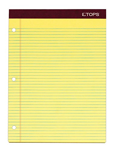 - Canary paper; 8-1/2″ x 11-3/4″ legal pads; narrow ruled, 3-hole punched; 100 sheets; 2 pack