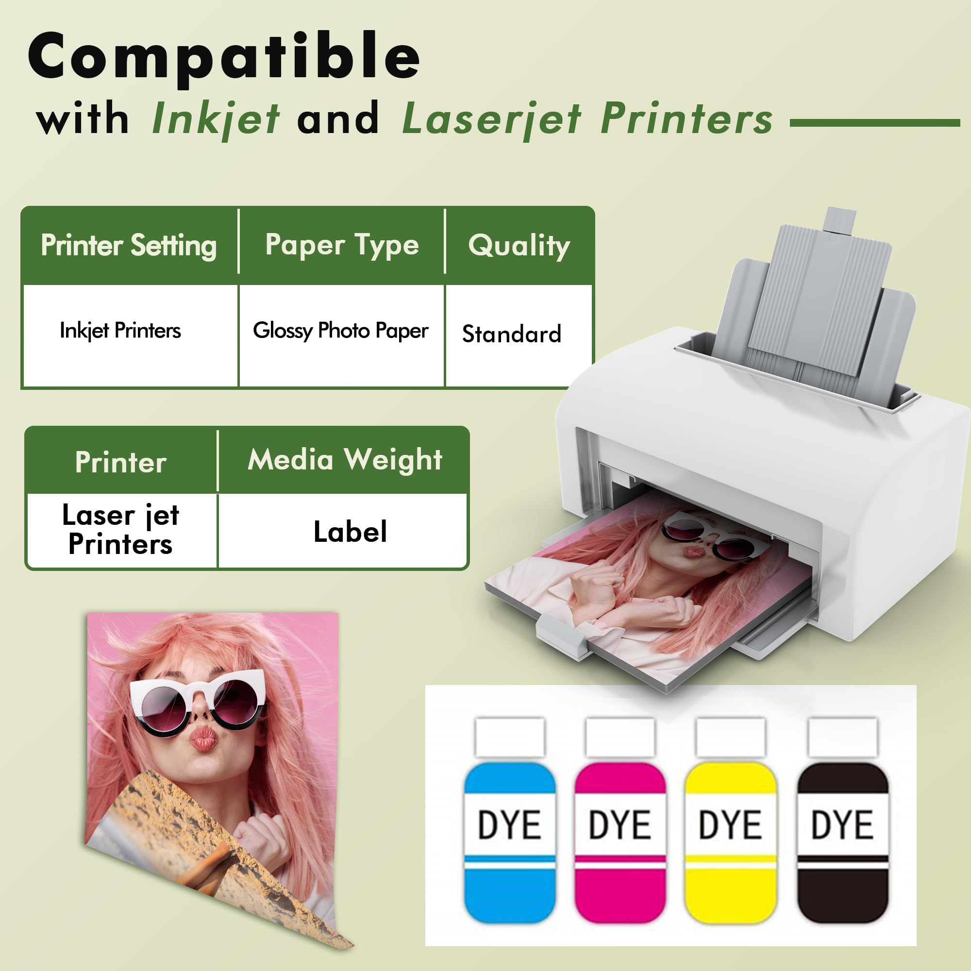 Work with inkjet printers used dye ink and laser printers, Ink dries quickly, no smearing, the printed image is sharp and crisp
