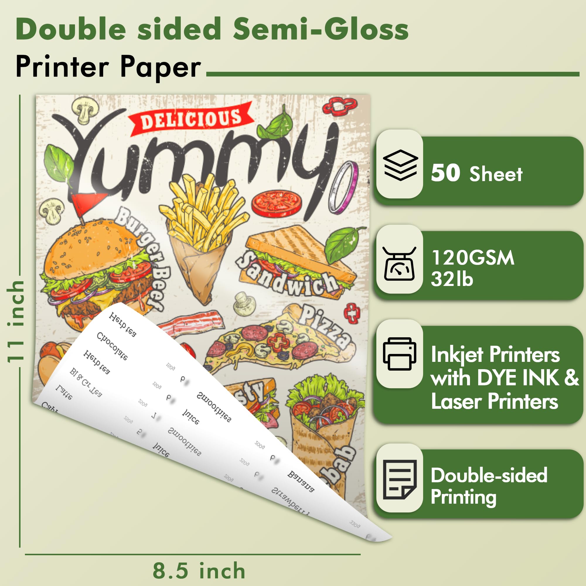 Transfer Master Double-sided Semi Glossy Thin Photo Printer Paper Semi-Gloss 8.5X11 Inch for Inkjet and Laser Printer for Menu Flyer Book 32LB 50sheets 120gsm