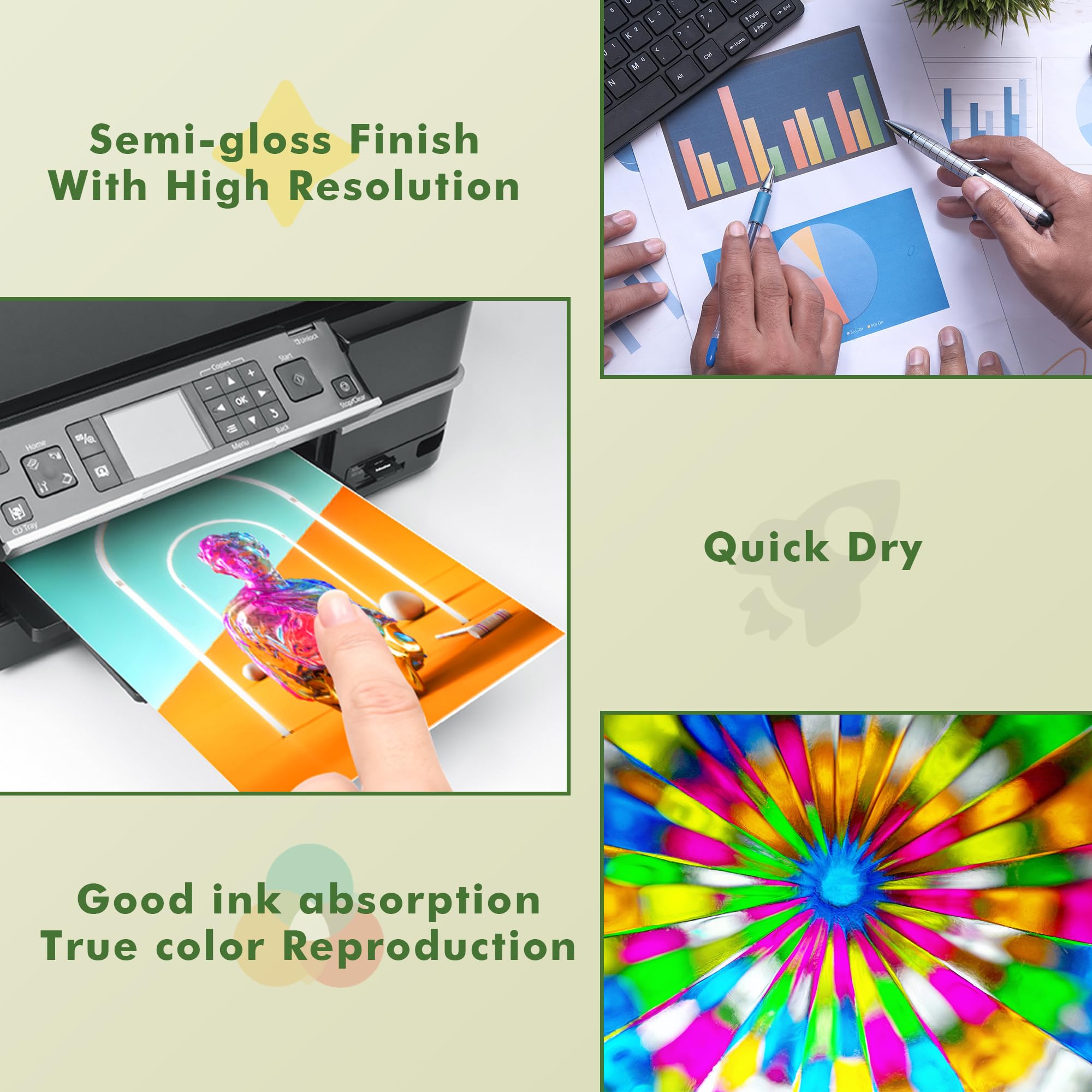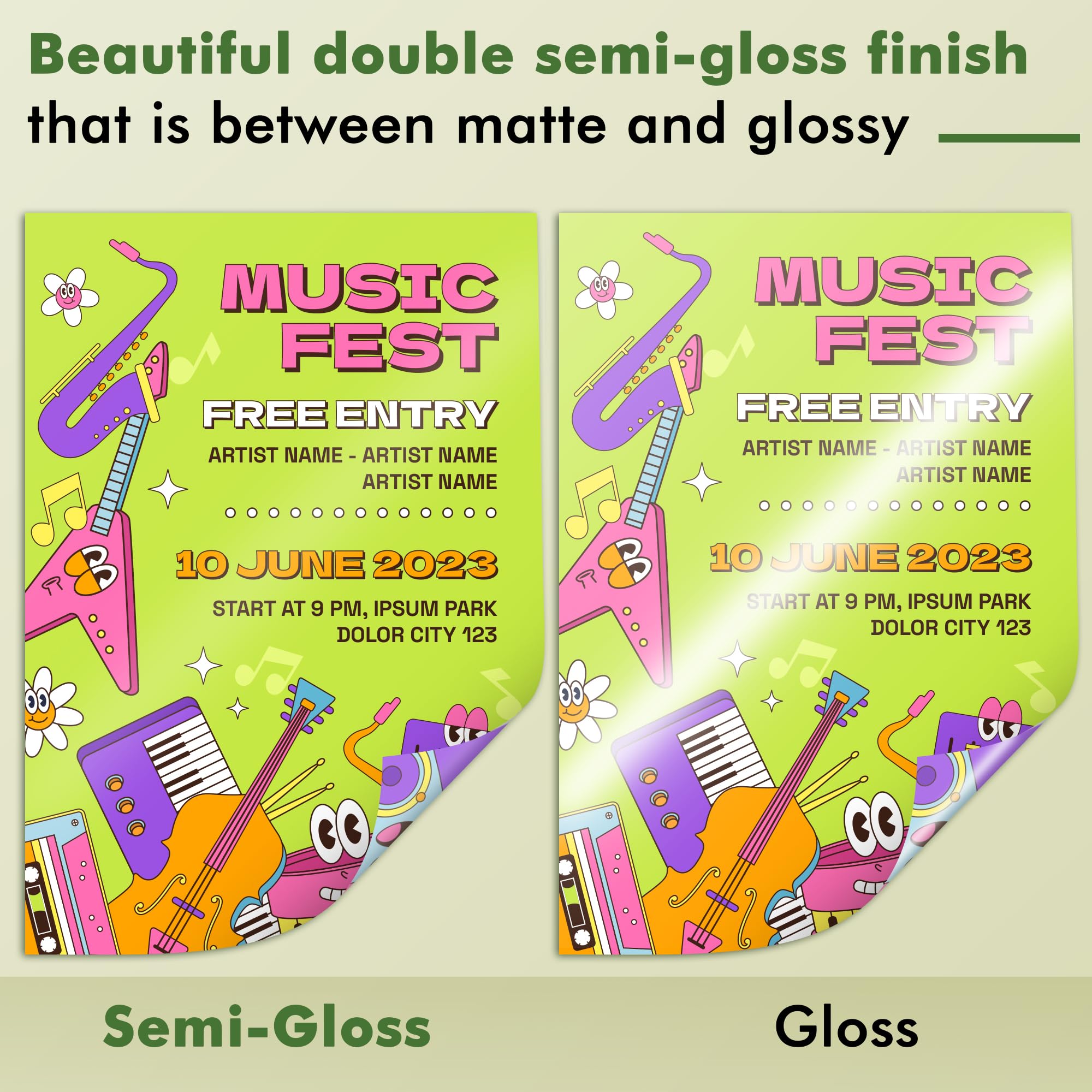 Double-Sided Semi-Gloss Finish, Both Sides Printable. Our semi-glossy photo paper is flat and has good stiffness, can enable you have smooth printing, which can help your print photo projects with high resolution and true color reproduction
