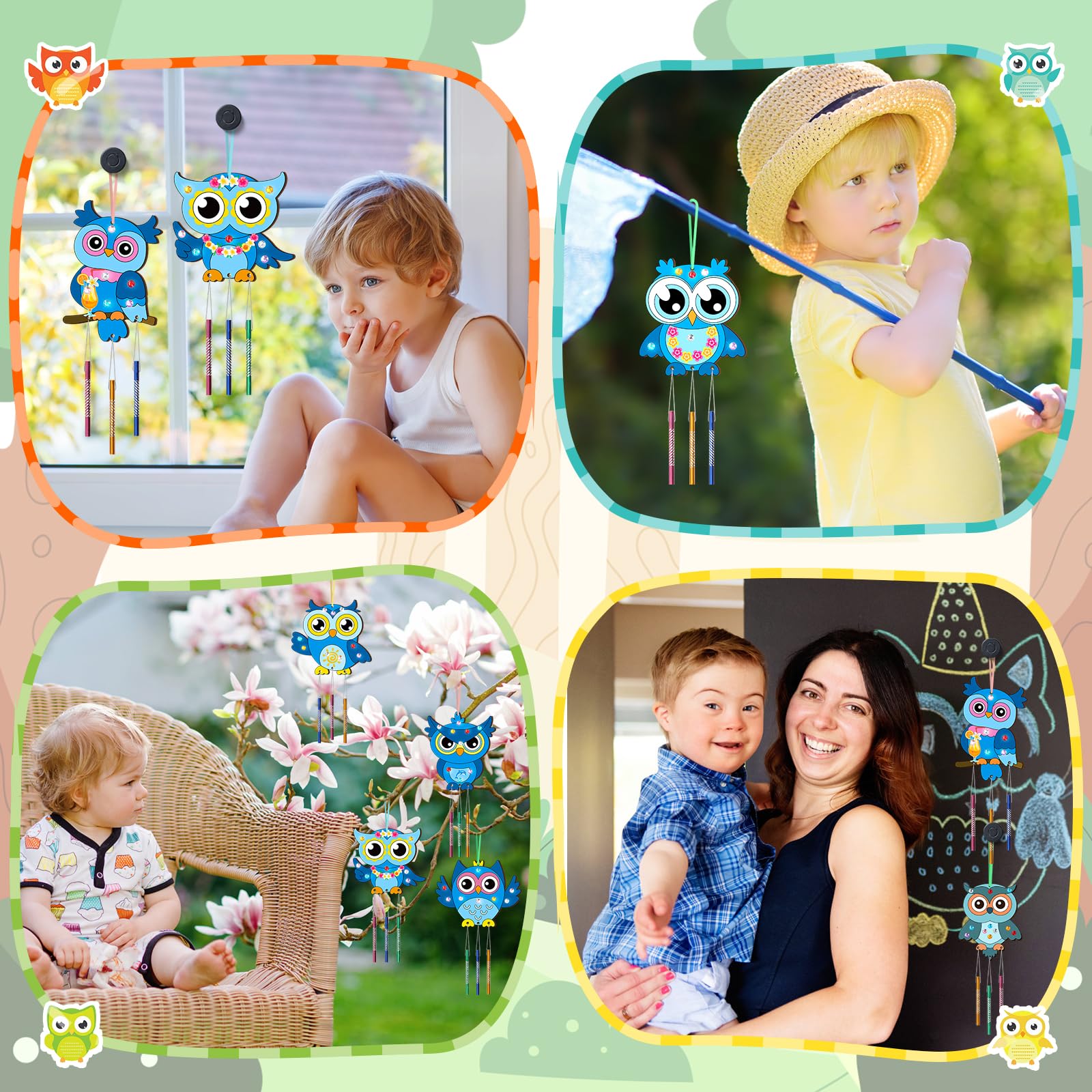 - Package Content: You will get 16pcs unfinished wooden owl in 8 styles, each style has 2pcs, 48pcs wind chime tubes in 4 colors, 20pcs 1m silver wire, 16pcs 30cm color rope, 1 sheet rhinestone stickers; great value DIY art crafts kits for kids