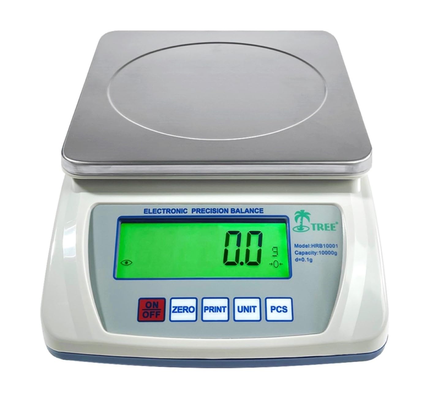 - The HRB 1002TL balance has strong strain gauge sensor, a stainless steel weighing pan; and a durable ABS body. Large stainless steel pan that can easily hold chemicals, powders, herbs and spices, jewelry, precious metals, tickets, coins and other small items. The built-in counting function can total multiple pieces automatically potentially saving you time and money tallying inventory and other items.
