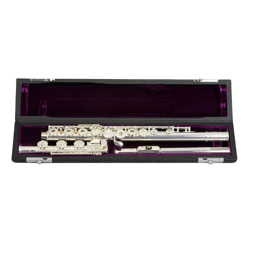 The Privilege step up flute is silver-plated with open-hole keys, pointed key arms, and B footjoint. The Trevor James Privilege flute is an excellent choice for a beginner looking for a more advanced instrument. Professional features like pointed key arms, open-hole keys, and a B footjoint make the Privilege popular with players looking for a step up at an affordable price. Other characteristics include: Triple-plated finish; Pointed key arm mechanism; Pisoni Lucien Deluxe pads; French style case; Fleece-lined case cover with shoulder strap; Includes a wooden cleaning rod, microfiber cleaning cloth, cotton swab, and plug set; Professionally set-up by the Flute Authority(sm) technicians in Coralville, IA.