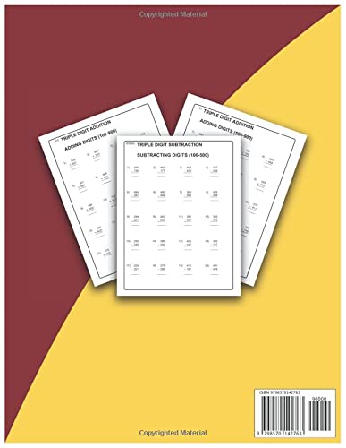 Triple digit Addition and Subtraction Practice Workbook, Reproducible Practice Problems for Kids Grades 3-5.This math workbook contains 2400 triple digit addition and subtraction practice problems with regrouping.This book is great for your kids to practice math problems.There are no answer keys for these tests. Children can utilize the 120 pages of planned tests to get trust in Math