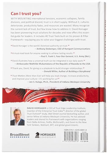 Can I trust you? WITH MOUNTING international tensions, economic collapses, family divisions, and political discord, trust is in short supply. Without it, cultures deteriorate, productivity fades, and resources are wasted. Many recognize the current lack of trust, but few know how to address it. David Horsager has been pioneering trust solutions for decades and now offers this essential guide for leaders. It includes 40 Trust Tools built on his proven 8-Pillar Framework–equipping you to solve your biggest challenges with trust.