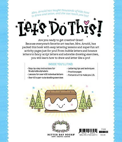 Do you love the look of fancy letters but think they are too hard to draw? Think again! Everyone’s favorite art teacher, Mrs. Arnold, is back with another super-fun guide that breaks popular art techniques down into bite-sized lessons. In this newest book, Mrs. Arnold will teach you how to draw 18 different alphabet styles! Trust her–you can do it! The book is conveniently organized into three main lettering styles: classic art deco letters, fancy cursive letters, and fun bubble letters. Each alphabet has step-by-step lessons and room to practice drawing right in the book. Once you master a main alphabet, you can move on to your choice of five variations on the style. It’s the easiest way to learn lettering. So, whether you are decorating a scrapbook, making a cute card to send to a friend, or just playing around, you’ll be able to pick the lettering style that’s right for you. BONUS! Also included in the book are 40+ step-by-step drawing exercises and lessons on how to put together complete compositions.