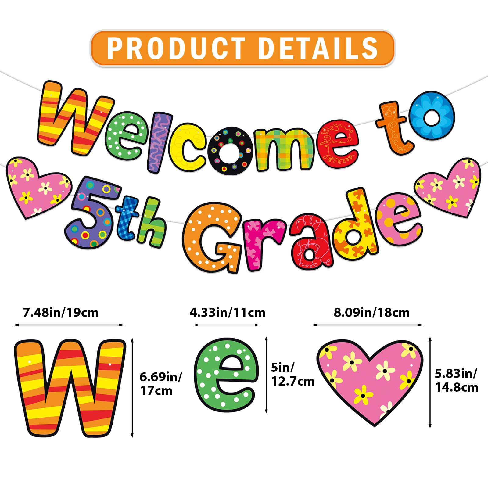 TTDQ Welcome To 5th Grade Banner First Day of 5th Grade Decorations Welcome Back to 5th Grade Banner with Hanging Decorations Back to School Decorations 5th Grade Classroom Decorations