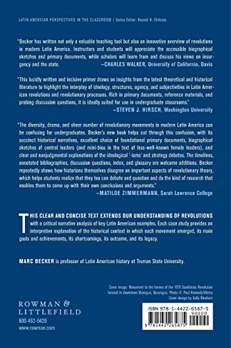 Revolutions are a commonly studied but only vaguely understood historical phenomenon. This clear and concise text extends our understanding with a critical narrative analysis of key case studies: the 1910-1920 Mexican Revolution; the 1944-1954 Guatemalan Spring; the 1952-1964 MNR-led revolution in Bolivia; the Cuban Revolution that triumphed in 1959; the 1970-1973 Chilean path to socialism; the leftist Sandinistas in Nicaragua in power from 1979-1990; failed guerrilla movements in Colombia, El Salvador, and Peru; and the Bolivarian Revolution in Venezuela after Hugo Chavez’s election in 1998. Historian Marc Becker opens with a theoretical introduction to revolutionary movements, including a definition of what “revolution” means and an examination of factors necessary for a revolution to succeed. He analyzes revolutions through the lens of those who participated and explores the sociopolitical conditions that led to a revolutionary situation, the differing responses to those conditions, and the outcomes of those political changes. Each case study provides an interpretive explanation of the historical context in which each movement emerged, its main goals and achievements, its shortcomings, its outcome, and its legacy. The book concludes with an analysis of how elected leftist governments in the twenty-first century continue to struggle with issues that revolutionaries confronted throughout the twentieth century.