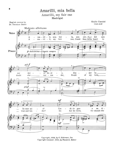 *Twenty-Four Italian Songs and Arias of the Seventeenth and Eighteenth Centuries – Medium High Voice* Discover a timeless collection of Italian vocal music with this Schirmer Library of Musical Classics edition. This book presents 24 essential Italian songs and arias from the 17th and 18th centuries, offering singers a foundation in classical vocal literature. Featuring authentic accompaniments and expertly edited sheet music, this volume is widely used by voice teachers and students alike. *Authentic Italian Songs and Arias for Singers* This collection has introduced generations of vocalists to Italian song, providing an essential repertoire for learning technique, expression, and phrasing. With compositions from the Baroque and Classical periods, each piece captures the beauty and nuance of Italian vocal music. The Parisotti realizations offer rich and satisfying piano accompaniments, allowing singers to experience these works as originally intended. *Perfect for Voice Lessons and Classical Training* Ideal for both private study and structured vocal training, this book is a must-have for singers developing their skills. Whether you are a beginner refining your technique or an experienced vocalist looking for recital material, this collection offers a broad range of styles and vocal challenges. Many of these songs are frequently assigned in voice lessons and auditions, making this a valuable resource for students and professionals alike. *Songs Included* Alma Del Core * Amarilli, Mia Bella * Caro Mio Ben * Che Fiero Costume * Comme Raggio Di Sol * Danza, Danza, Fanciulla Gentile * Gia Il Sole Dal Gange * Il Mio Bel Foco * Lasciatemi Morire * Le Violette * Nel Cor Piu Non Sento * Nina * Non Posso Disperar * O Cessate Di Piagarmi * O Del Mio Dolce Ardor * Per La Gloria D’Adorarvi * Pieta, Signore * Pur Dicesti, O Bocca Bella * Se Florindo E Fedele * Se Tu M’ami * Sebben, Crudele * Tu Lo Sai * Vergin, Tutto Amor * Vittoria, Mio Core.