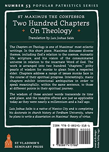 Popular Patristics Series Volume 53 The Chapters on Theology is one of Maximus’ most eclectic writings. In this short piece, Maximus discusses many diverse themes, including God’s relation to the cosmos, monastic discipline and life, scriptural difficulties, and his vision of the consummated universe in relation to the incarnate Word of God. The work is arranged into two hundred “chapters,” which are often pithy pearls of wisdom coming from the respected figure of an elder or abbot. Chapters tend to address a range of issues monks would face in the course of their spiritual progress. As such, chapters differ in complexity, although many exhibit intentional ambiguities in order to speak meaningfully with the same sentence to those at different points in their spiritual journey. The wisdom of these ancient words has transcended its time and place and continues to be an inspirational piece, the insights of which are just as applicable today as they were nearly a millennium and a half ago.