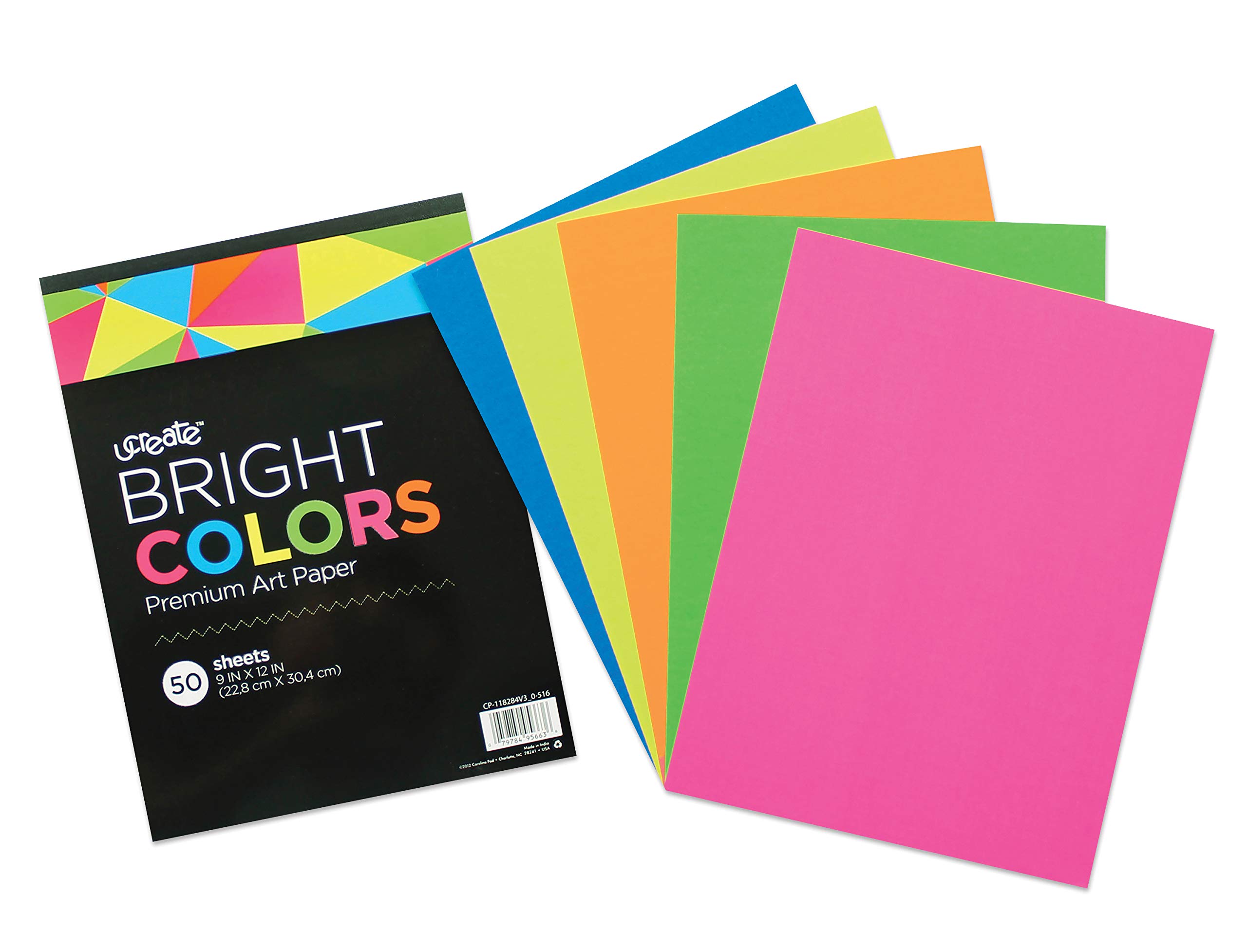 The U-Create 95663 Bright Colors Premium Art Paper includes neon pink, neon blue, neon yellow, neon green and neon orange paper. This heavyweight, 65 lb. paper is perfect for cutting, gluing and folding. Design unique crafts and standout projects with quality and affordable U-Create arts & crafts products.