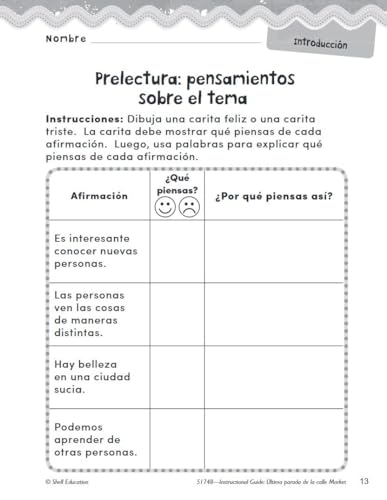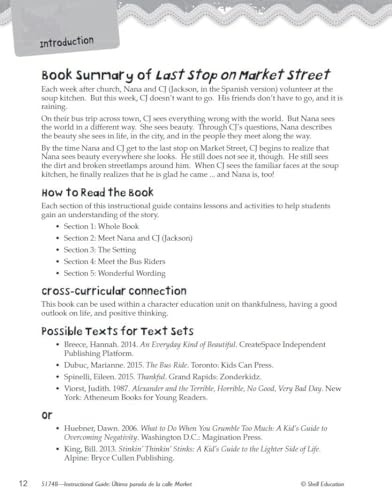 This instructional guide helps students develop reading comprehension and analytical skills using the Spanish edition of “Last Stop on Market Street.”