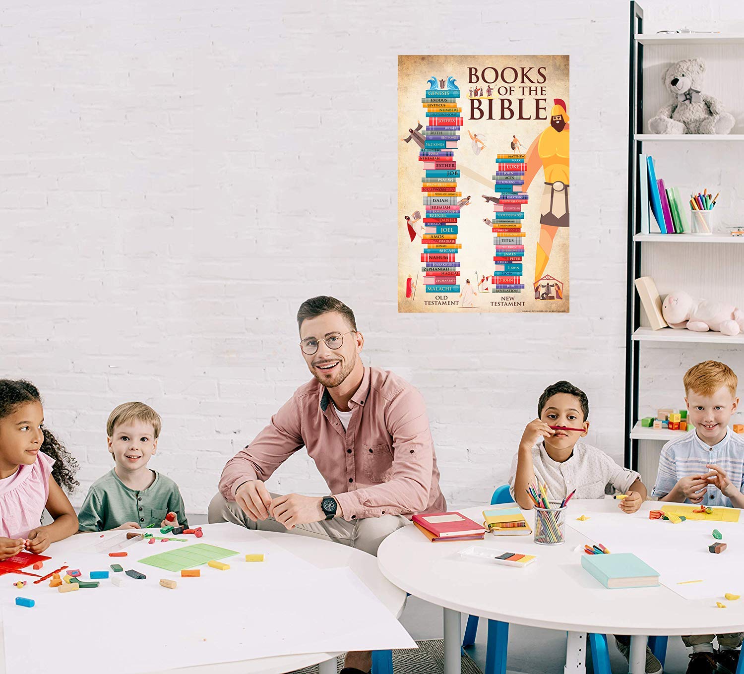 UMA#GIFTS Books of The Bible Poster For Kids 16″ x 24″ Bible Posters for Classroom, Church, Sunday School, or Homeschool, Christian Learning New Testament Old Testament Decorations