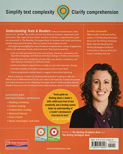 “Goals help guide my thinking about reader’s skills within each level of text complexity, and a leveling system helps my understanding of readers’ development from level to level.” –Jennifer Serravallo Understanding Texts & Readers makes comprehension make sense. In it, Jennifer Serravallo narrows the distance between assessment and instruction. She maps the four fiction and four nonfiction comprehension goals she presented in The Reading Strategies Book to fourteen text levels and shares sample responses that show what to expect from readers at each. Jen simplifies text complexity and clarifies comprehension instruction. She begins by untangling the many threads of comprehension: Levels, engagement, stamina, the relevance of texts, and much more. Then level by level she: calls out with precision how plot and setting, character, vocabulary and figurative language, and themes and ideas change as fiction across levels specifies how the complexity of main idea, key details, vocabulary, and text features increases in nonfiction texts points out what to expect from a reader as text characteristics change provides samples of student responses to texts at each level shares progressions across levels to support instructional planning. Even if you haven’t read the book your reader is responding to, you’ll have the background necessary to make great teaching decisions for all your readers. “Understanding subtle shifts and increases in demands from level to level,” writes Jennifer Serravallo, “can guide what a teacher asks a student, what the teacher expects of the student, and what the teacher, therefore, teaches the student.” Want to become a master of matching kids to books? Looking to take the difficult out of differentiation? Or do you want to dramatically increase the power and responsiveness of Jen’s Reading Strategies Book? Understanding Texts & Readers shows you how to move forward when students need to make progress.