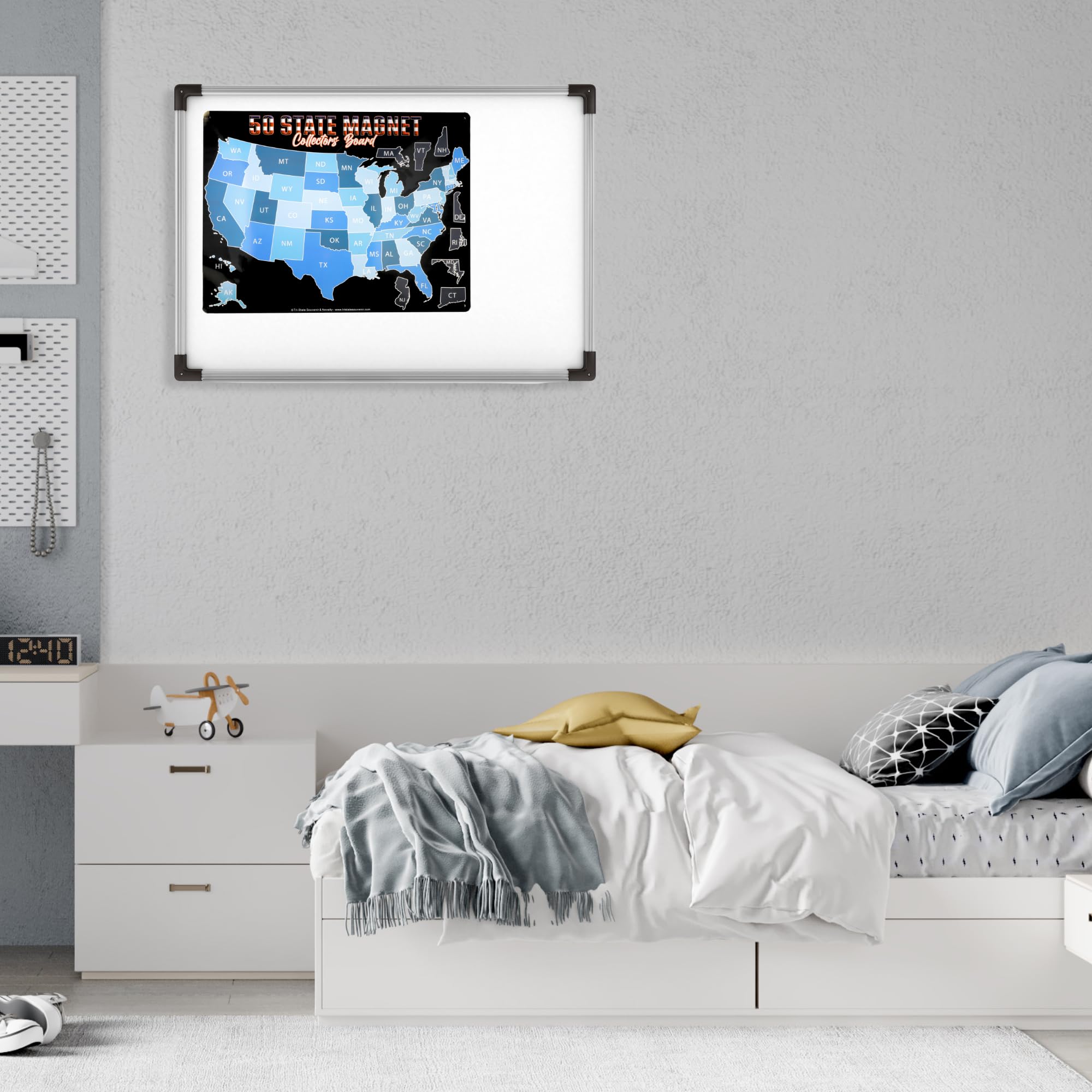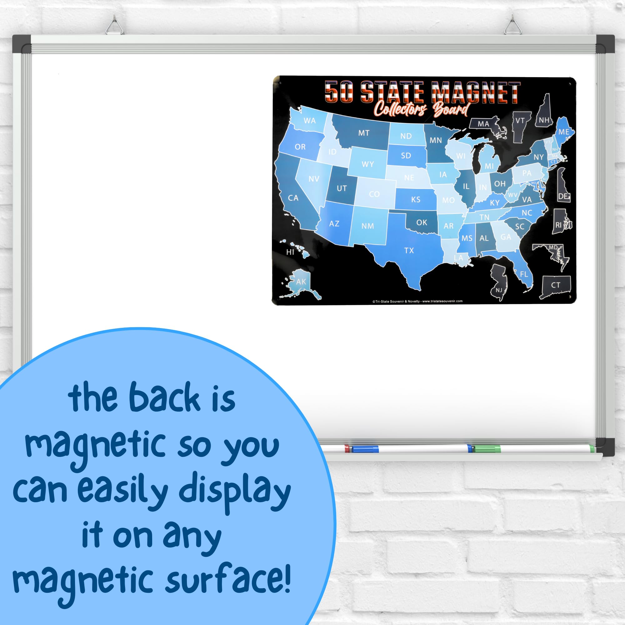 - United States Magnet Board designed for collectors, featuring an interactive travel map display with a magnetic surface, sized 18 by 24 inches.