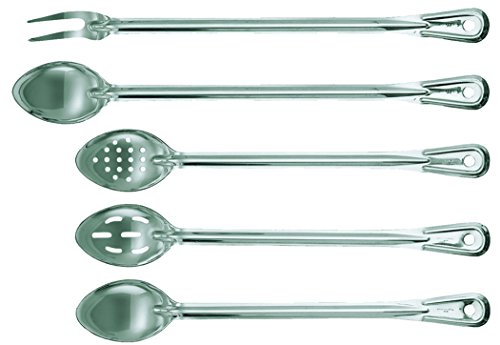 Update International has been offering quality products to the world of Beverage and Foodservice for more than 30 years. During this time, Update has grown from a small distributor of Coffee Servers and Flatware into one of the leading suppliers to the foodservice industry. In addition to our beverage products, Update offers an extensive line of over 2,000 quality foodservice items, making Update your one-stop provider. Updates basting spoons are heavy-duty and serve many purposes in the kitchen. Each spoon is made of 18/8 stainless steel material. The perforated bowl allows for drainage within the spoon bowl. Handle includes a notch that will prevent the spoon from slipping into the dish and includes a loop hole for easy storage. Thickness 1.2-mm. Measures 13-inch length. Handle is approximately 9 1/2″ long and bowl of spoon is 4″ long. Dishwasher safe.