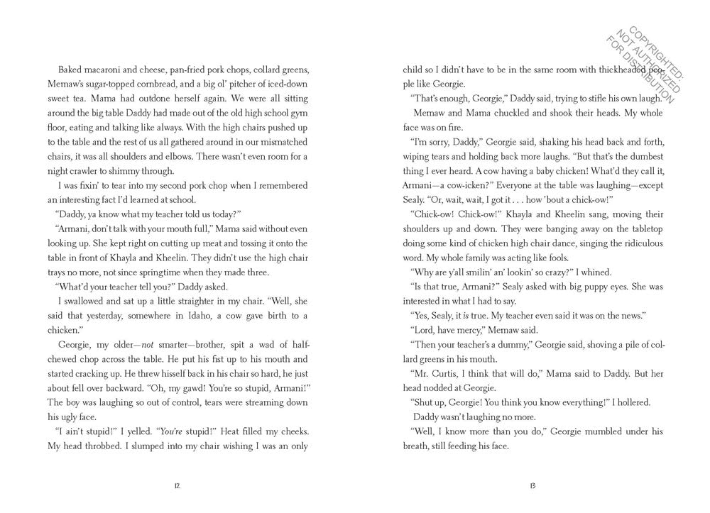 A gripping story of courage and survival, Upside Down in the Middle of Nowhere celebrates the power of hope and love in the face of the unthinkable. Armani Curtis can think about only one thing: her tenth birthday. She’s having a party, her mama is making a big cake, and she has a good feeling about a certain wrapped box. Turning ten years old is a big deal to Armani. It means she’s older, wiser, more responsible. But when Hurricane Katrina hits the Lower Nines of New Orleans and tears her world apart, Armani realizes that being ten means being brave, watching loved ones die, and mustering all her strength to help her family weather the storm.