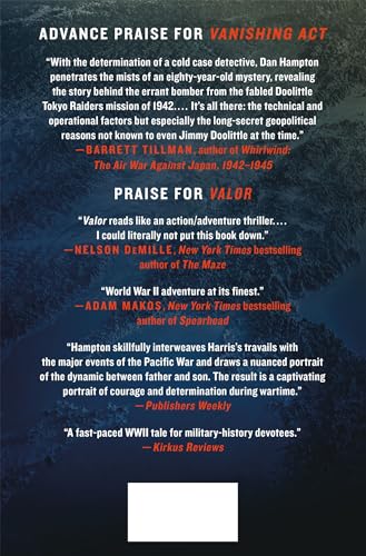 From New York Times bestselling author Dan Hampton comes the gripping, untold story of a vital secret mission set during the darkest days of the Second World War. In the dark days after the devastating Pearl Harbor attacks during the spring of 1942, the United States was determined to show the world that the Axis was not invincible. Their bold plan? Bomb Tokyo. On April 18, 1942, sixteen B-25s, known as the Doolittle Raiders, hit targets across Japan before escaping to China. The eighth plane, however, did not follow the other raiders. Instead, Plane 8’s pilots, Captain Edward “Ski” York and Lieutenant Bob Emmens, never attacked Tokyo, but headed across Japan to the Soviet Union, supposedly due to low fuel. Yet, this bomber was the only plane on the mission with maps of the Soviet Union aboard. And why did Plane 8’s route, recently discovered in the Japanese Imperial Archives, show them nowhere near their target? Uncovered facts reveal that bombing Tokyo was merely a cover for Plane 8’s real mission, but what was their secret objective? No one, aside from the two pilots and whomever sent them on this mission, truly knew why they were there, nor has the reason ever been revealed. Until now. In Vanishing Act, for the first time, New York Times bestselling author and former fighter pilot Dan Hampton definitively solves the final mystery of the Doolittle Raid with never-before-published documents and photographs in exclusive collaboration with Japanese researchers and the Raiders’ descendants.