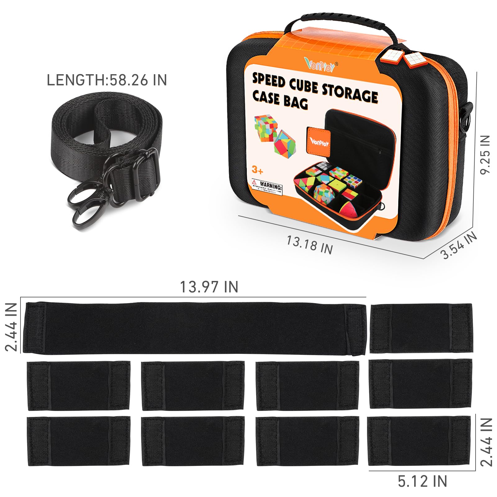 Vanplay Speed Cube Storage for Different Types Cube Fidget Toy, Hard EVA Case, Water-Resistant, Portable Travel Game Brain Teaser Fidget Toy with Inner Mesh Pocket, Shoulder (Case Only)