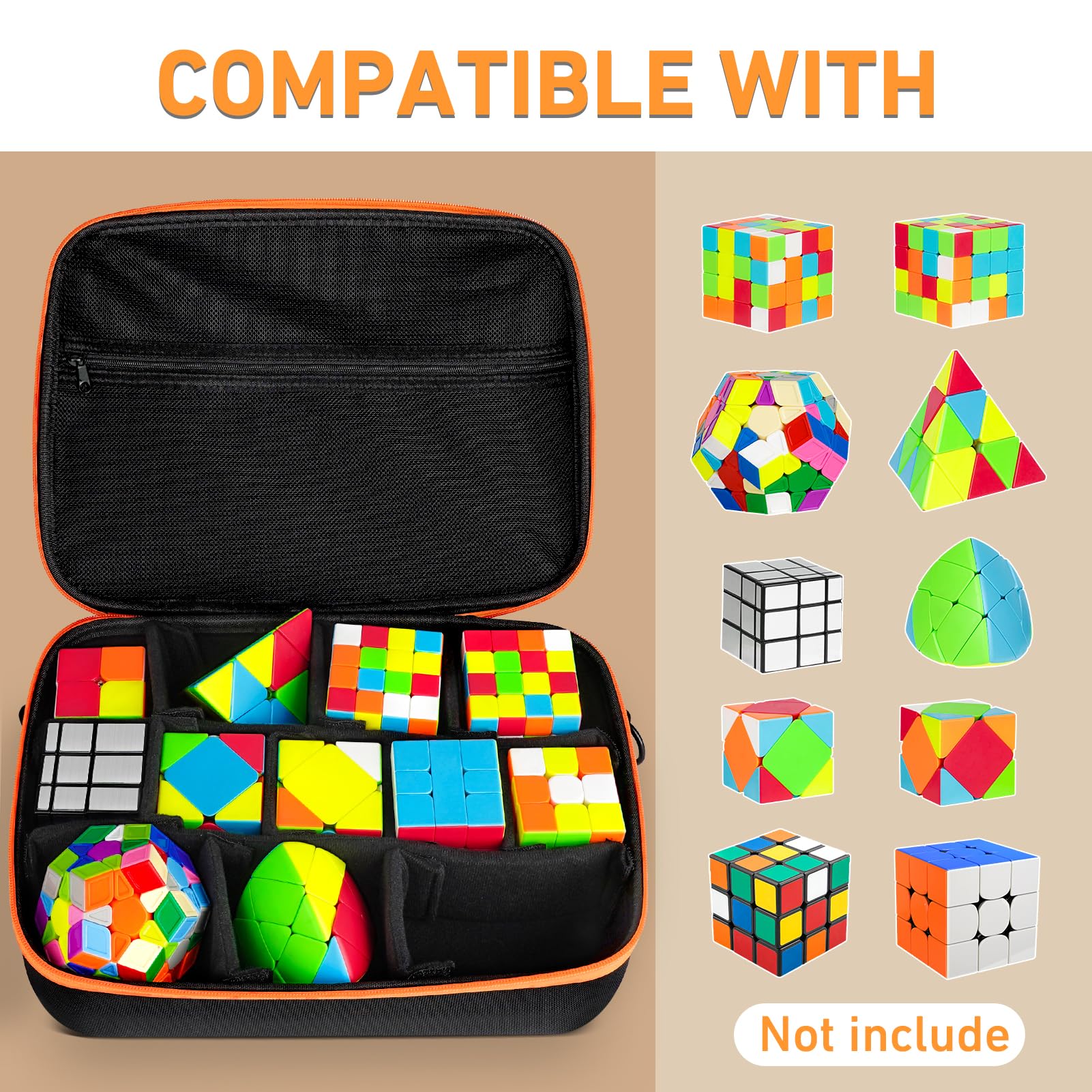 This Speed cube case is specifically designed to be cube storage compatible with more than 12+ Rubik’s cube with different shapes and sizes, such as pyramid puzzle, megaminx, skewb, three-dimensional square, circle, etc.