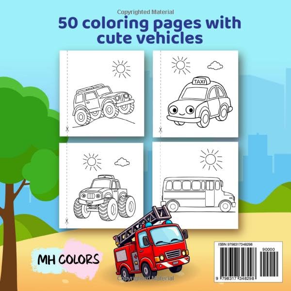 Looking for a fun and simple coloring book for your toddler? The Vehicles Coloring Book for Toddlers is designed especially for young children to spark creativity, build fine motor skills, and keep little hands busy! Features: 50 Cute Vehicle Illustrations – Includes cars, trucks, tractors, airplanes, trains, boats, and more! Big, Bold Images – Simple designs with thick lines, perfect for toddlers and preschoolers. Single-Sided Pages – Prevents bleed-through and makes it easy to tear out and display. Dark Backing on Each Page – Extra protection for markers and minimize distractions. Perfect for Home or Travel – Great for quiet time, preschool, or on-the-go fun. Great Gift Idea – Ideal for boys and girls ages 1-4, including toddlers, preschoolers, and kindergarteners. Keep your little one entertained while they learn and grow! Add the Vehicles Coloring Book for Toddlers to your cart today!