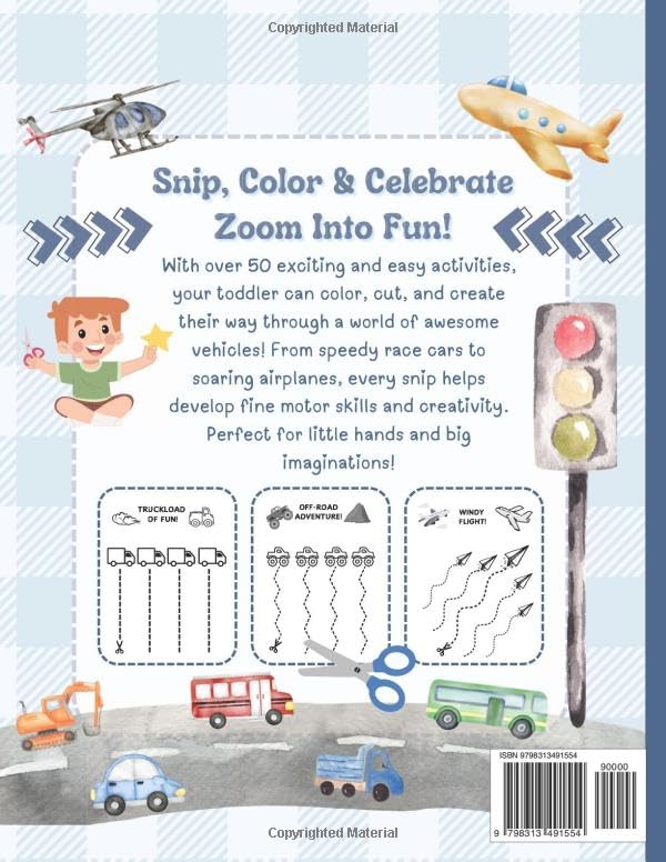 Fun and Easy Cutting Practice with Cars, Trucks, Trains, and More! Get ready to snip, color, and zoom into fun! This vehicles-themed scissor skills book is designed especially for toddlers aged 2-4, with 50+ simple cutting activities that build hand strength, coordination, and confidence–while exploring everything that moves! Why Parents and Toddlers Love This Book: Beginner Scissor Practice – Learn to cut straight lines, wavy paths, zig-zags, and shapes. All Kinds of Vehicles – From fire trucks and tractors to helicopters and diggers! Color & Cut Combo – Each page is colorable before cutting to encourage creativity. Perfect for Tiny Hands – Bold lines and large images designed for 2-4 year olds. Certificate of Achievement – Celebrate every milestone with a fun award page. Whether you’re supporting early development at home or looking for a fun screen-free activity, this workbook is a perfect gift for toddlers who love trucks, trains, and things that go! Builds fine motor skills Encourages hand-eye coordination Develops cutting confidence through play Give your toddler a head start with scissors–and hours of fun! Add to cart today and make learning an adventure they’ll love!