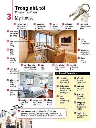 This picture dictionary facilitates Vietnamese language acquisition for visual learners by connecting words and phrases to images.