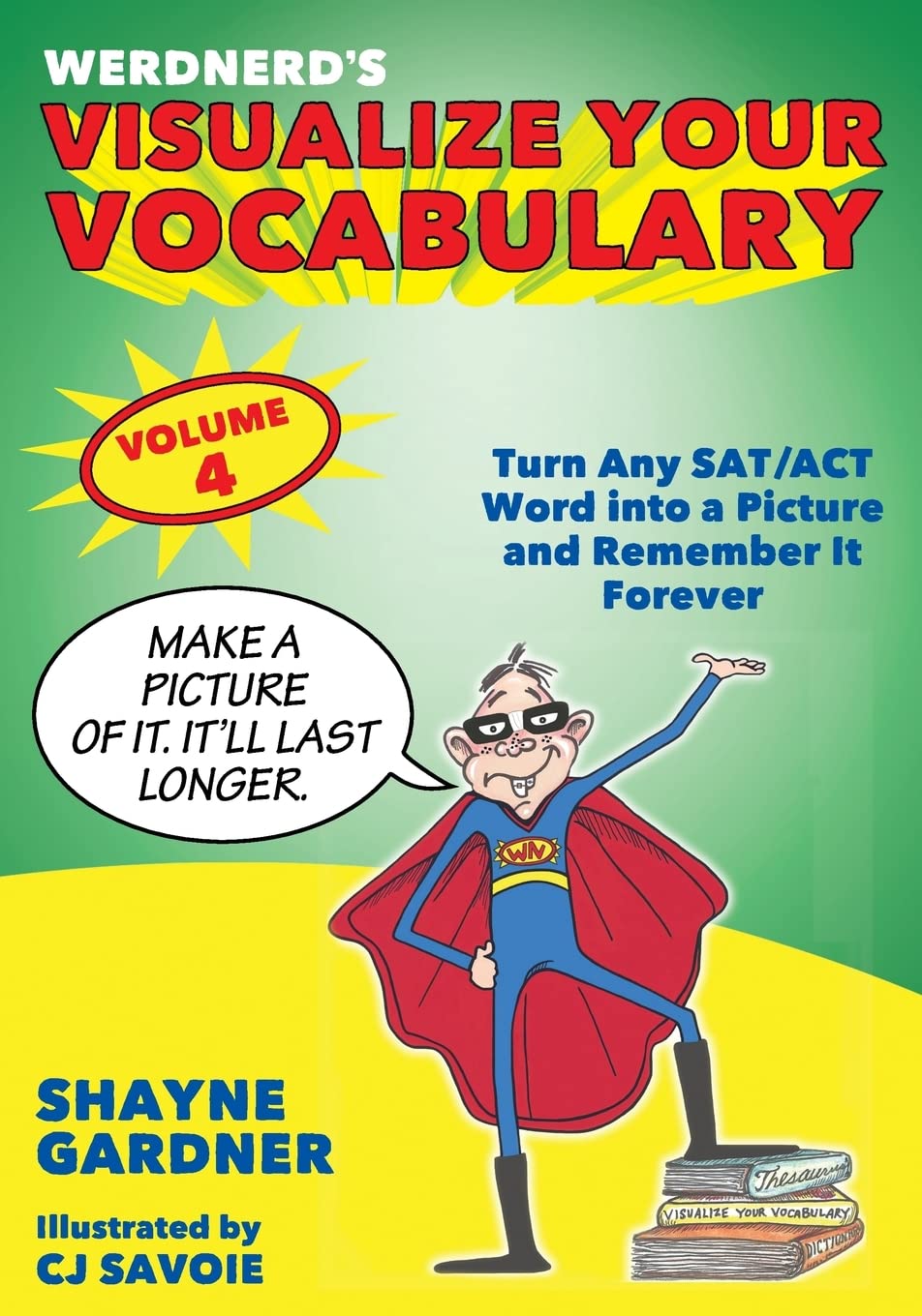 This is volume four of a soon to be five-volume series that will establish the definitive “How To” in permanently memorizing SAT and ACT words or any other words. The method in this book makes it fun, easy, fast, and painless to tame tough SAT and ACT vocabulary. Studies show that most of us are visual learners, so the trick to remember an abstract concept is to turn it into a picture. That can take time and effort. This book does all of the work for you. It is the academic equivalent of steroids for an athlete. Read it and gain a remarkable edge over other students. Read it and dramatically raise your verbal SAT or ACT score. Read it and develop a powerful vocabulary which is the most accurate indicator of potential academic success. Read it and the mild-mannered, offbeat, superhero Werdnerd will take you on a tour through 250 zany illustrations that will magically stick in your memory like glue. You see it. You get it. It’s that simple.