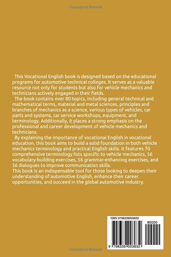 Vocational English for Vehicle Mechanics and Technicians: Comprehensive Topics and Terminology Lists in Vehicle Mechanics