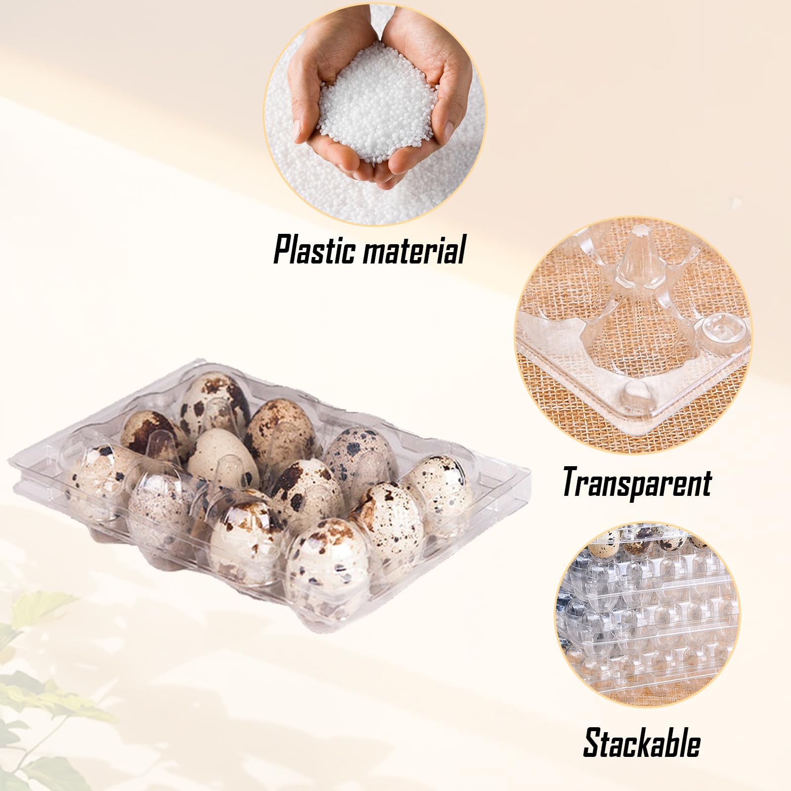 • Material:The quail egg boxes is made of high quality PVC plastic material,clear,lightweight,strong and durable,very suitable for holding fragile quail eggs.