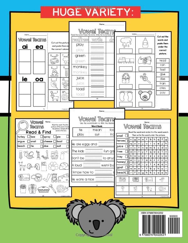 This workbook helps early readers in grades K-2 practice and master phonics with vowel teams to improve reading and writing skills.