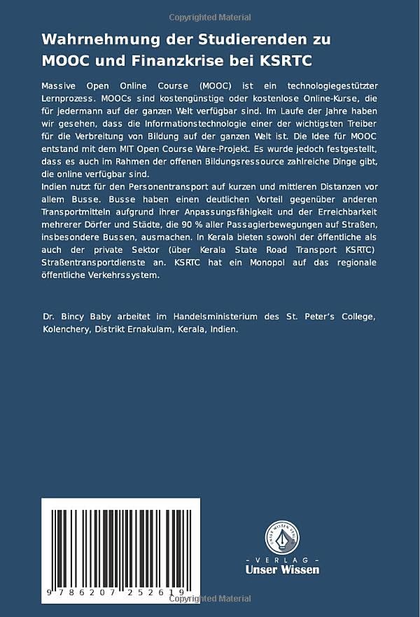 Wahrnehmung der Studierenden zu MOOC und Finanzkrise bei KSRTC: Eine Studie uber die Wahrnehmung von Studenten uber MOOC und die Finanzkrise von KSRTC (German Edition)