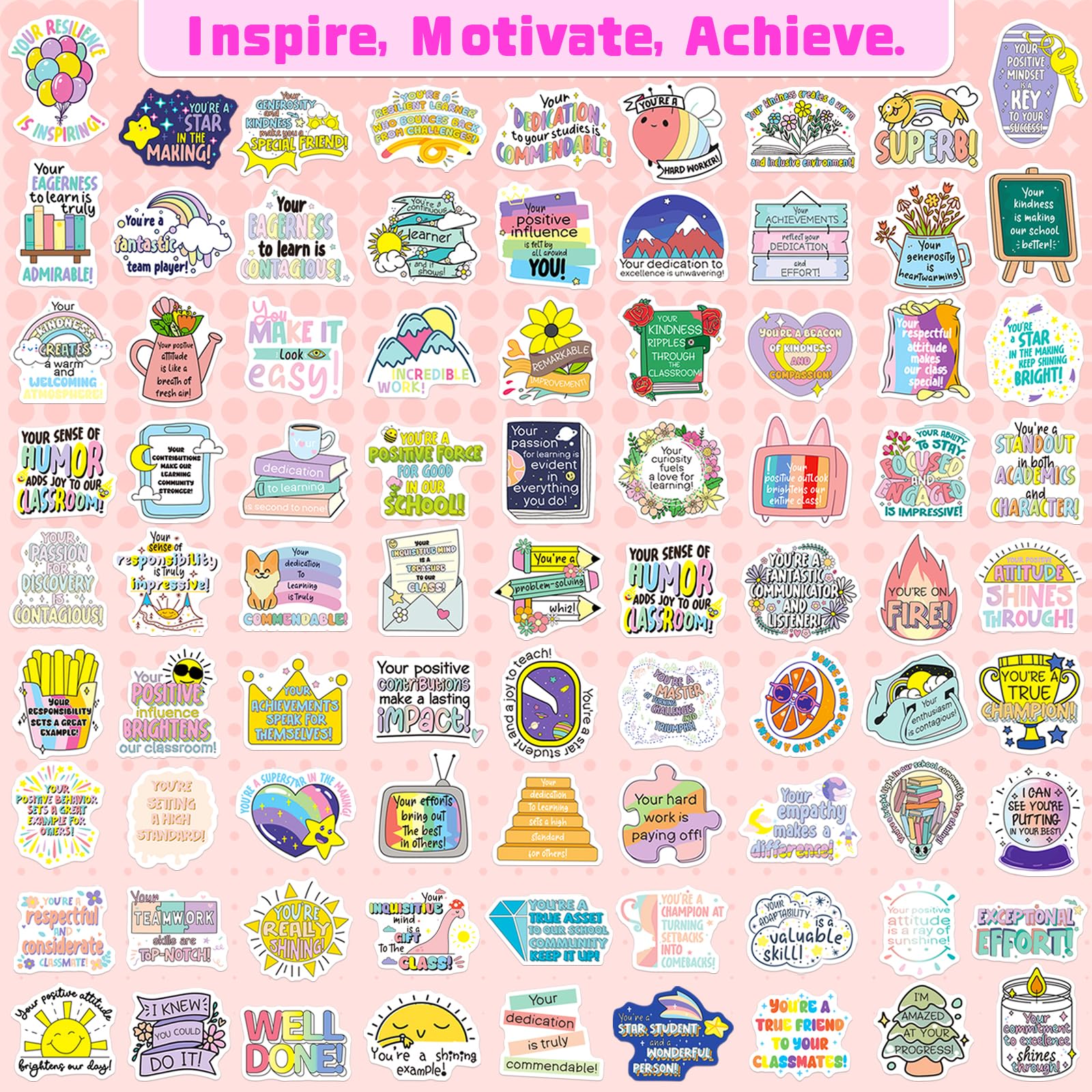 Inspirational Sticker Pack: About 1-2 inches in size, this set includes 400 motivational stickers in 200 styles. All stickers feature positive and affirmative content, making them essential reward items for kids teens students