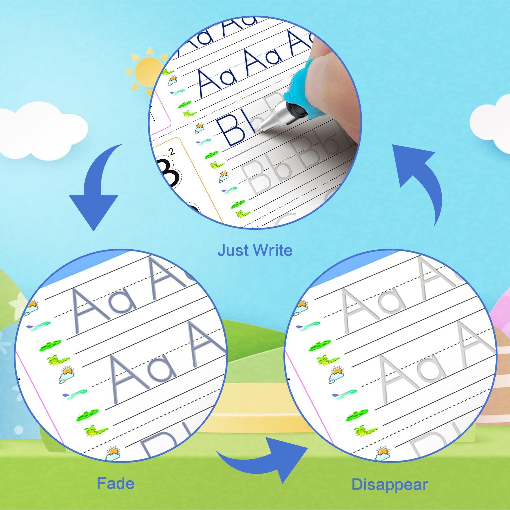 - Handwriting practice for kids:The kids can use their magic pen to follow the paths and draw different shapes, great for improving their writing skills. They can also master English handwriting skills and write beautiful English words through training with the reusable writing board tracing books.Great for beginners.