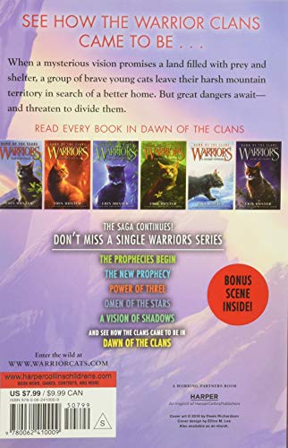 Discover the origins of the warrior Clans in this thrilling prequel to Erin Hunter’s #1 nationally bestselling Warriors series This box set includes all six books in the Dawn of the Clans prequel series, and is perfect for the collections of longtime Erin Hunter fans and readers new to the Warriors world. For many moons, a tribe of cats has lived near the top of a mountain, where prey is scarce and the seasons are harsh. A group of brave young cats sets off in search of a better home… but the dangers of their new world threaten to divide them. They must find a new way to live side by side–or risk tearing one another apart.