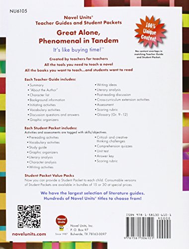 This time-saving, easy-to-use Teacher Guide includes inspiring lesson plans which provide a comprehensive Novel Unit – the legwork is done for you! The guide incorporates essential reading, writing and thinking practice. (This is NOT the paperback novel.)