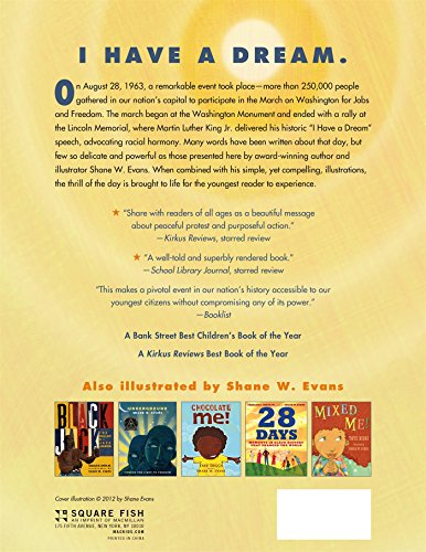 On August 28, 1963, a remarkable event took place–more than 250,000 people gathered in our nation’s capital to participate in the March on Washington for Jobs and Freedom. The march began at the Washington Monument and ended with a rally at the Lincoln Memorial, where Martin Luther King Jr. delivered his historic “I Have a Dream” speech, advocating racial harmony. Many words have been written about that day, but few so delicate and powerful as those presented here by award-winning author and illustrator Shane W. Evans. When combined with his simple yet compelling illustrations, the thrill of the day is brought to life for even the youngest reader to experience. We March was one of Kirkus Reviews’ Best Children’s Books of 2012, and is an important story about the African American civil rights movement.