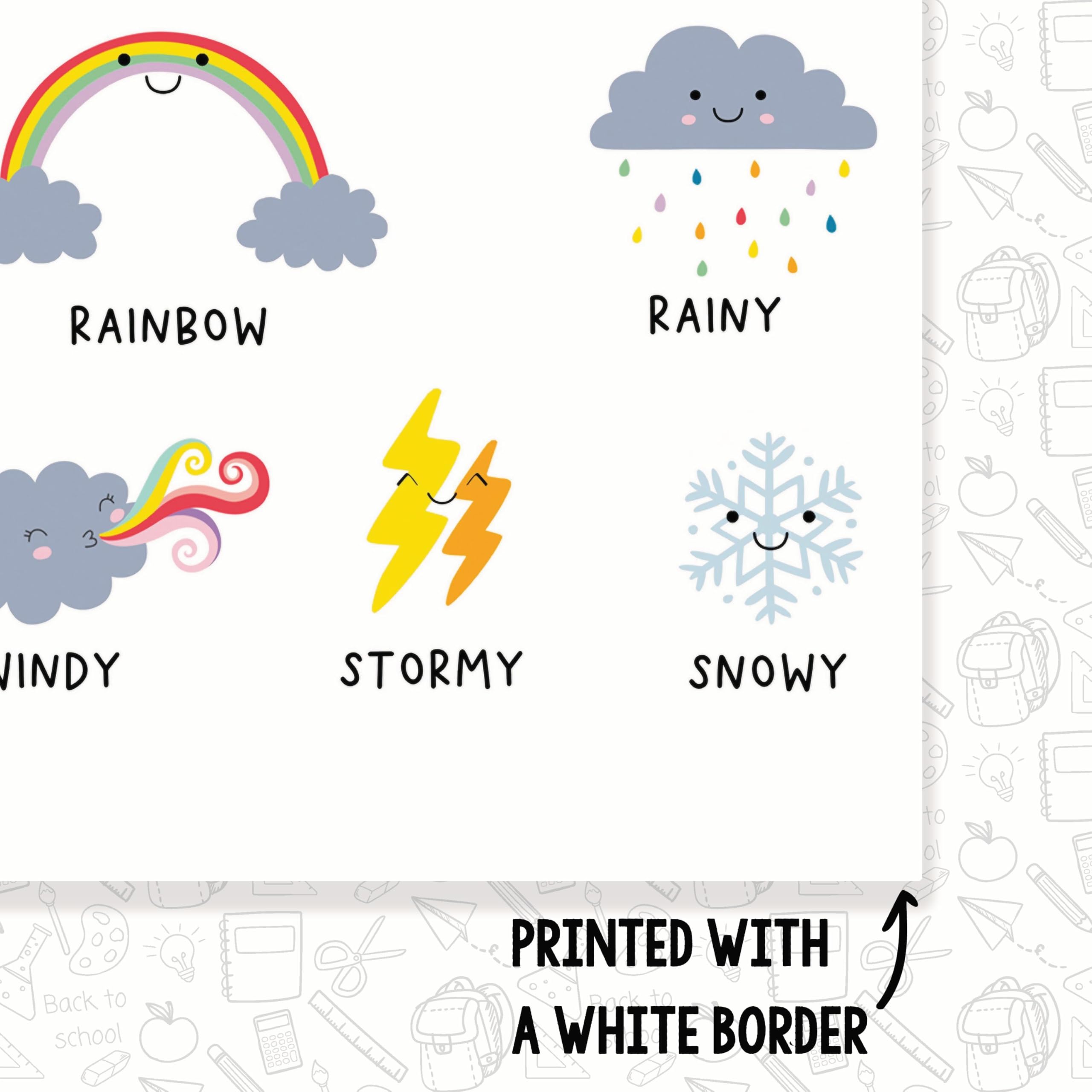 This educational poster helps students learn about the weather, supporting science curriculum.