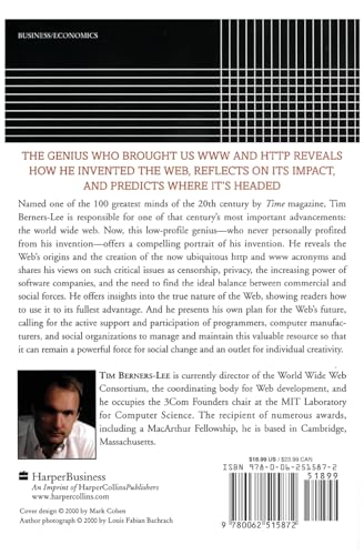 Named one of the greatest minds of the 20th century by Time, Tim Berners-Lee is responsible for one of that century’s most important advancements: the world wide web. Now, this low-profile genius-who never personally profitted from his invention -offers a compelling protrait of his invention. He reveals the Web’s origins and the creation of the now ubiquitous http and www acronyms and shares his views on such critical issues as censorship, privacy, the increasing power of softeware companies , and the need to find the ideal balance between commercial and social forces. He offers insights into the true nature of the Web, showing readers how to use it to its fullest advantage. And he presents his own plan for the Web’s future, calling for the active support and participation of programmers, computer manufacturers, and social organizations to manage and maintain this valuable resource so that it can remain a powerful force for social change and an outlet for individual creativity.