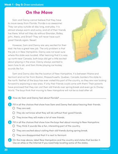 This workbook reinforces key academic skills in language arts and math to prepare a student for fifth grade.