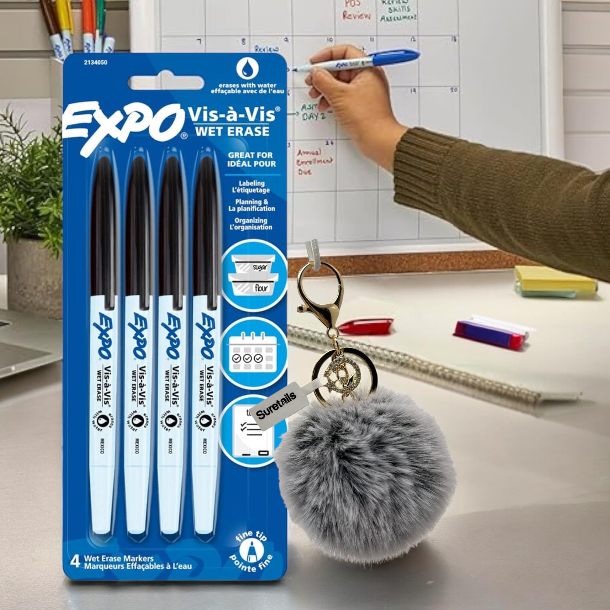 ![Wet Erase Markers, Fine Point Black Transparency Overhead Markers, Quick-Drying, For Classroom & Office Presentations, 4 Count - Bundle With Suretails Pompom Balls Fluffy Keychain [Pack Of 3] - Image 3](https://m.media-amazon.com/images/I/81tBuPzPSCL.jpg)