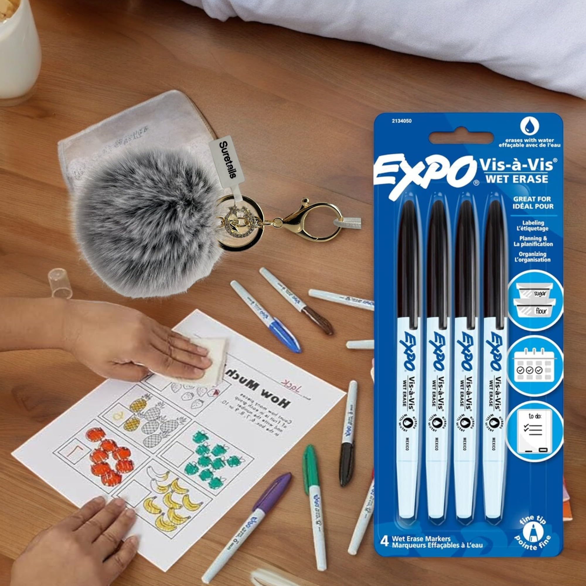 ![Wet Erase Markers, Fine Point Black Transparency Overhead Markers, Quick-Drying, For Classroom & Office Presentations, 4 Count - Bundle With Suretails Pompom Balls Fluffy Keychain [Pack Of 3] - Image 2](https://m.media-amazon.com/images/I/81QHn3qc8yL.jpg)